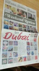 Œuvre "Le Mur pour la Paix", en couverture du journal Weekend Review "Art Dubaï"; exposée à l'Alliance Française de Dubaï du 16 au 21 mars 2015.